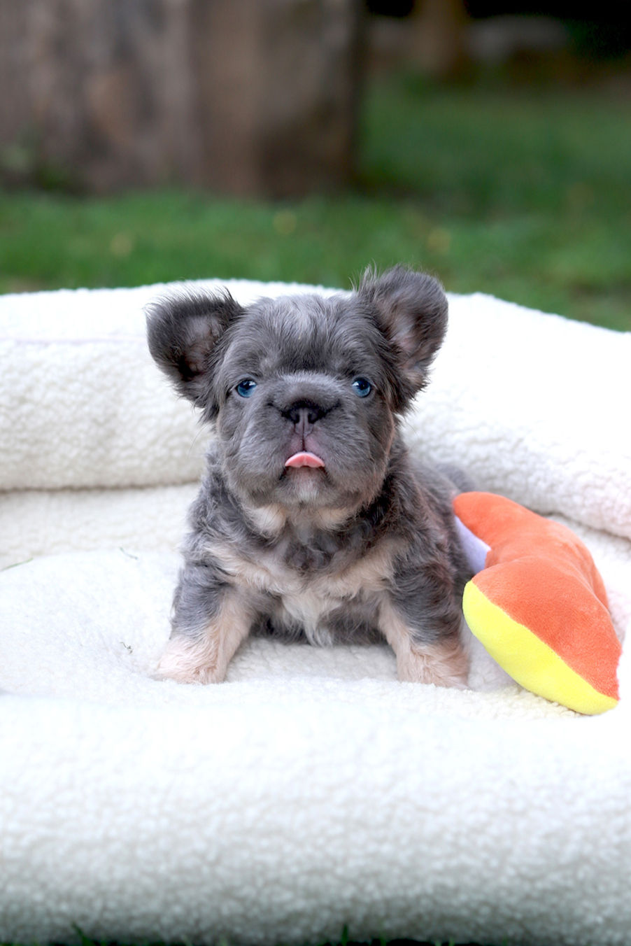 Meet Astrix — Big Rope Full Fluffy Isabella Tan New Shade Frenchie, Carrier of Pink Astrix is our French Gummy Bear with a hairstyle!